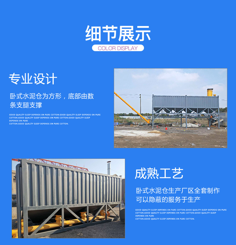 臥式水泥倉被廣泛應(yīng)用于各種移動(dòng)式混凝土攪拌站,免基礎(chǔ)混凝土攪拌站和其他臨時(shí)使用的混凝土攪拌站或穩(wěn)定土拌合站中。
